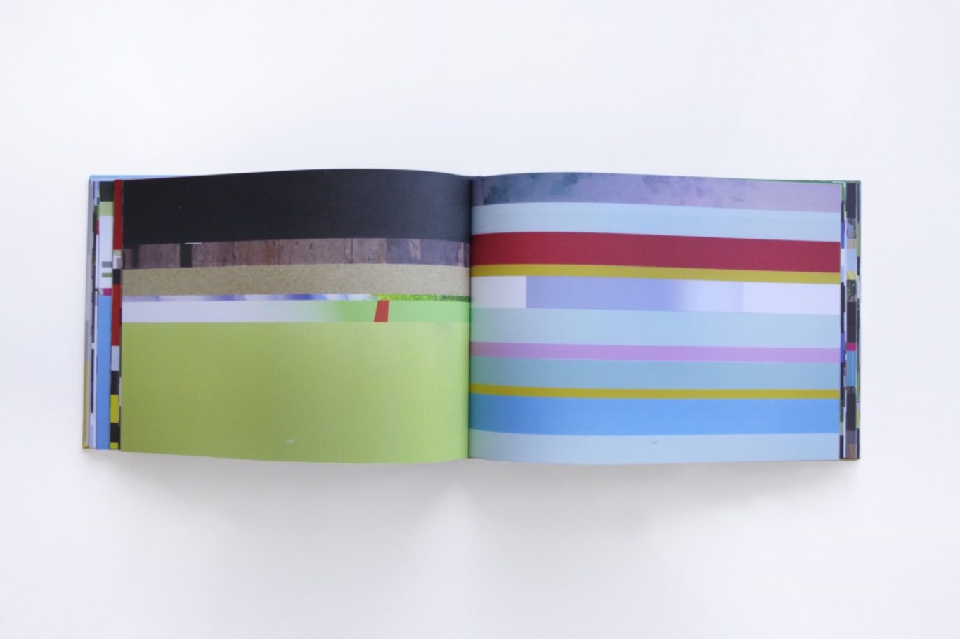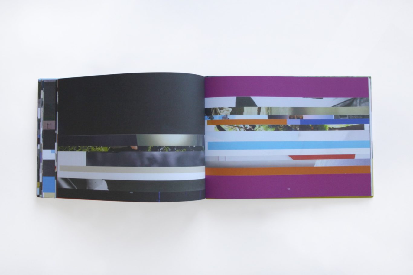 The prints collected in this book are based on collages created between 2017 and 2021. The source materials are standard-format magazines that were cut vertically. Inspired by the technique of classic film editing, the cuts were deliberately made "before" the action: individual characteristics, action, writing, symbols, and content-related information were omitted.