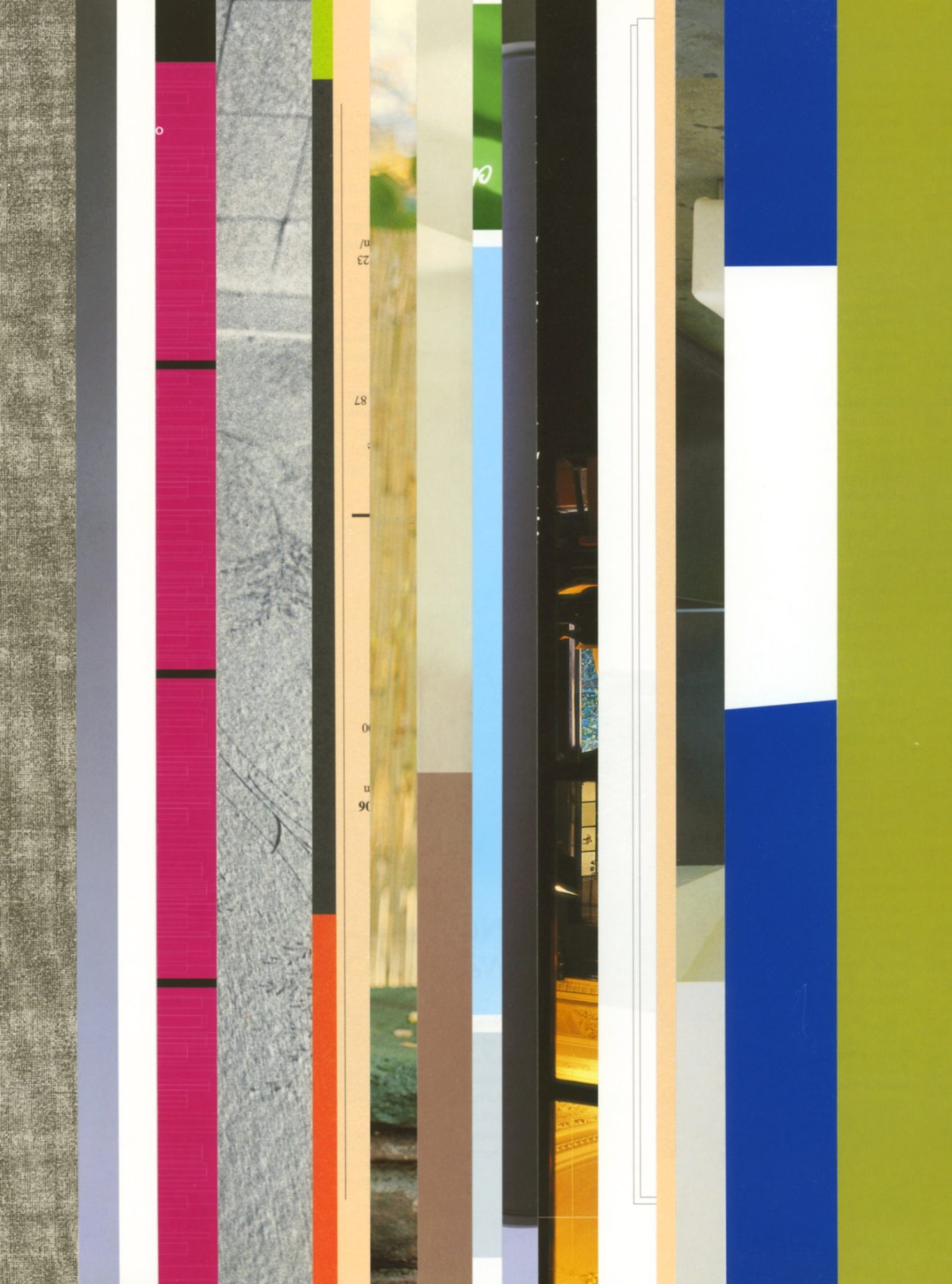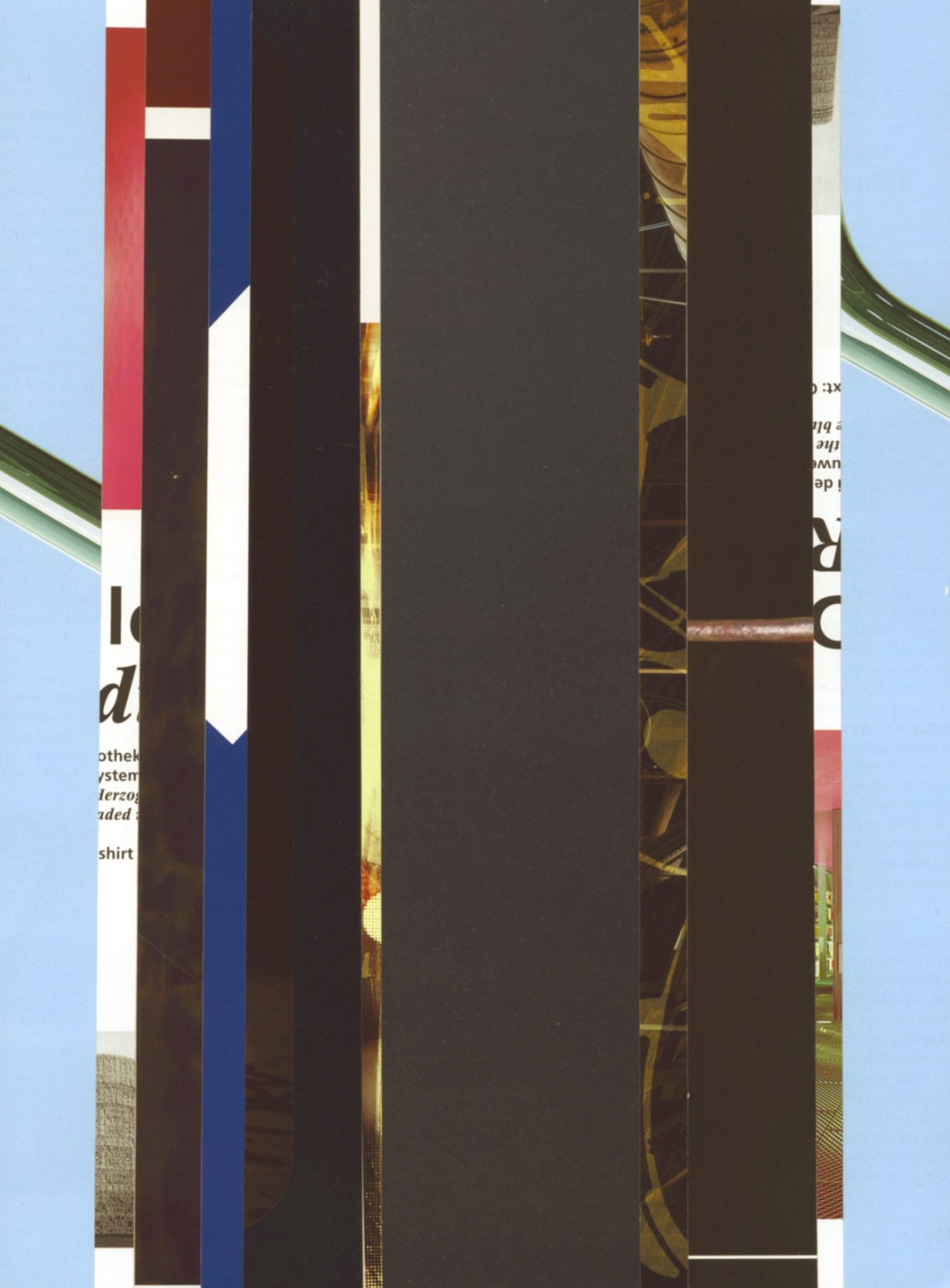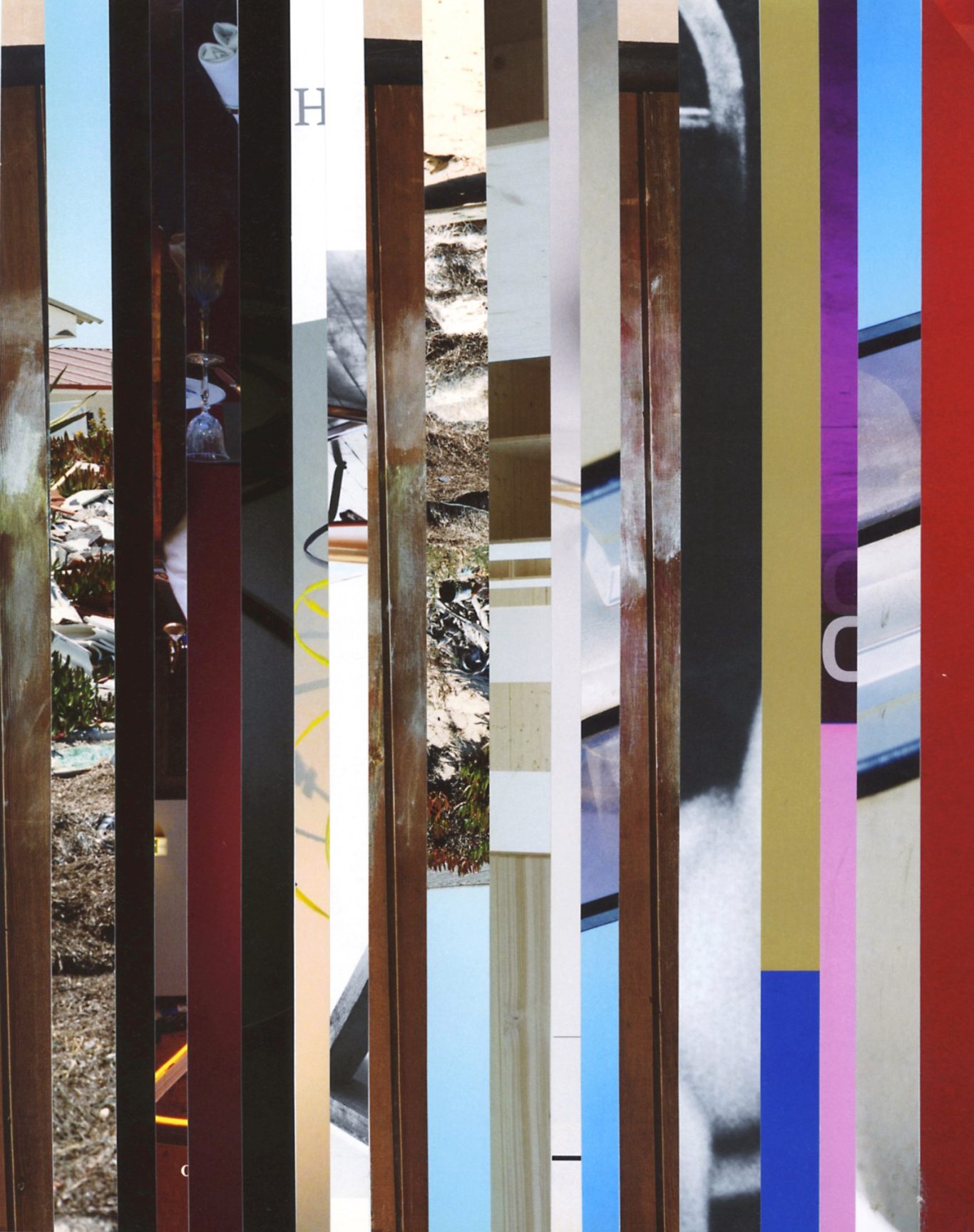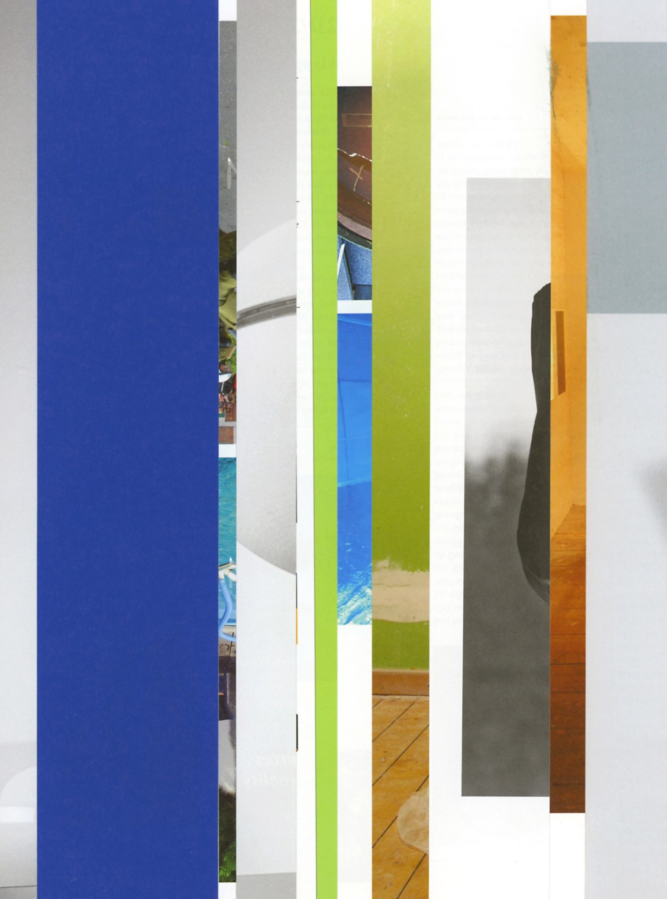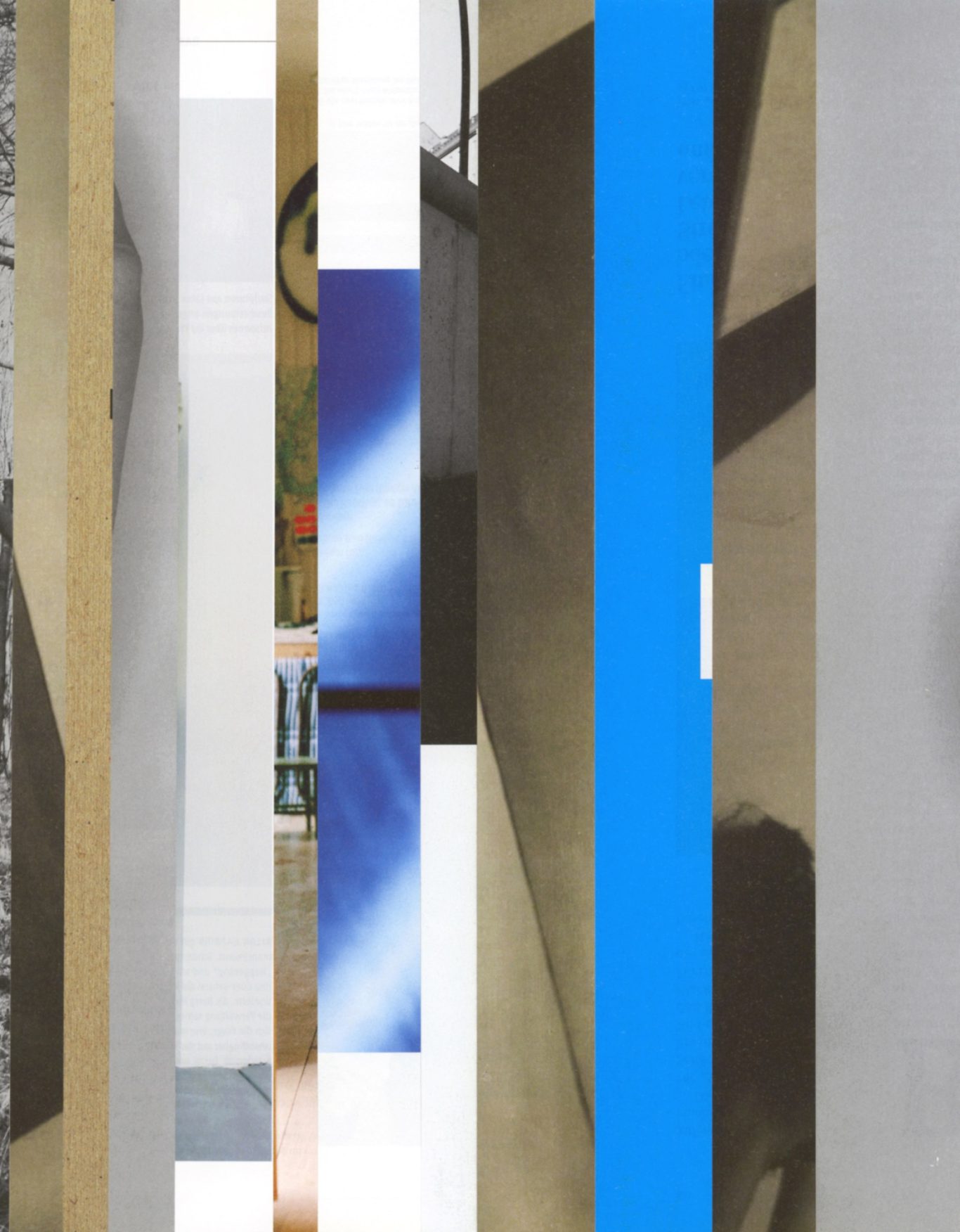 Ausgangsmaterial sind vertikal geschnittene Zeitschriften im Standardformat. Angelehnt an die Technik des klassischen Filmschnitts wurde hier bewusst „vor“ der Handlung geschnitten: Einzelne Merkmale, Handlung, Schrift, Figuren und inhaltliche Informationen wurden konsequent weggelassen.