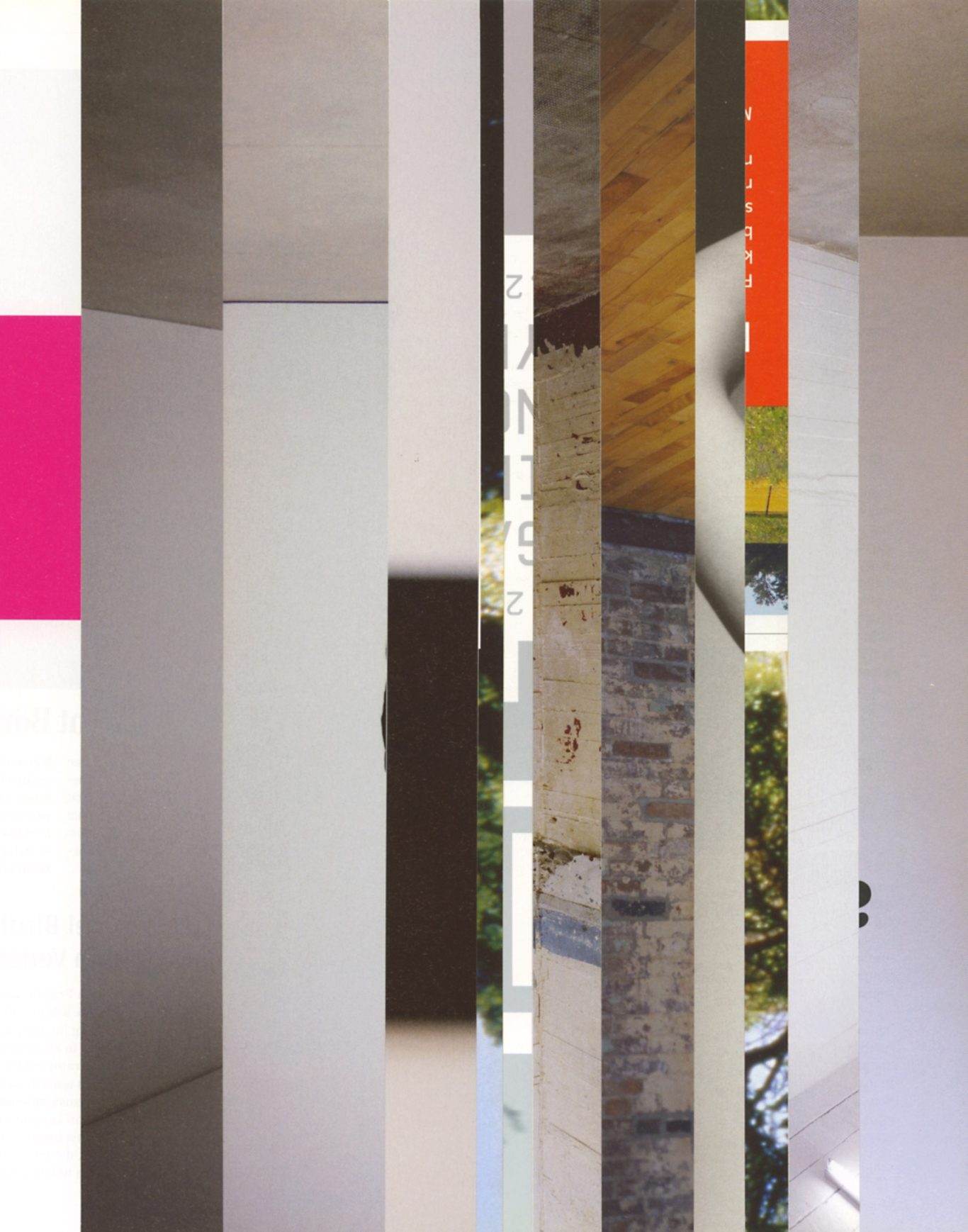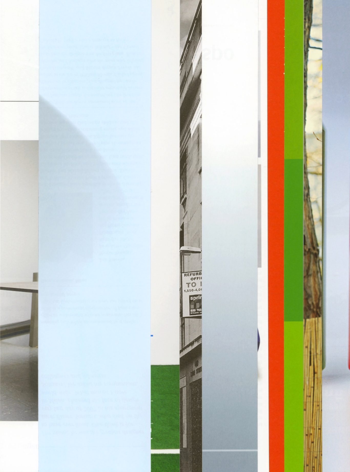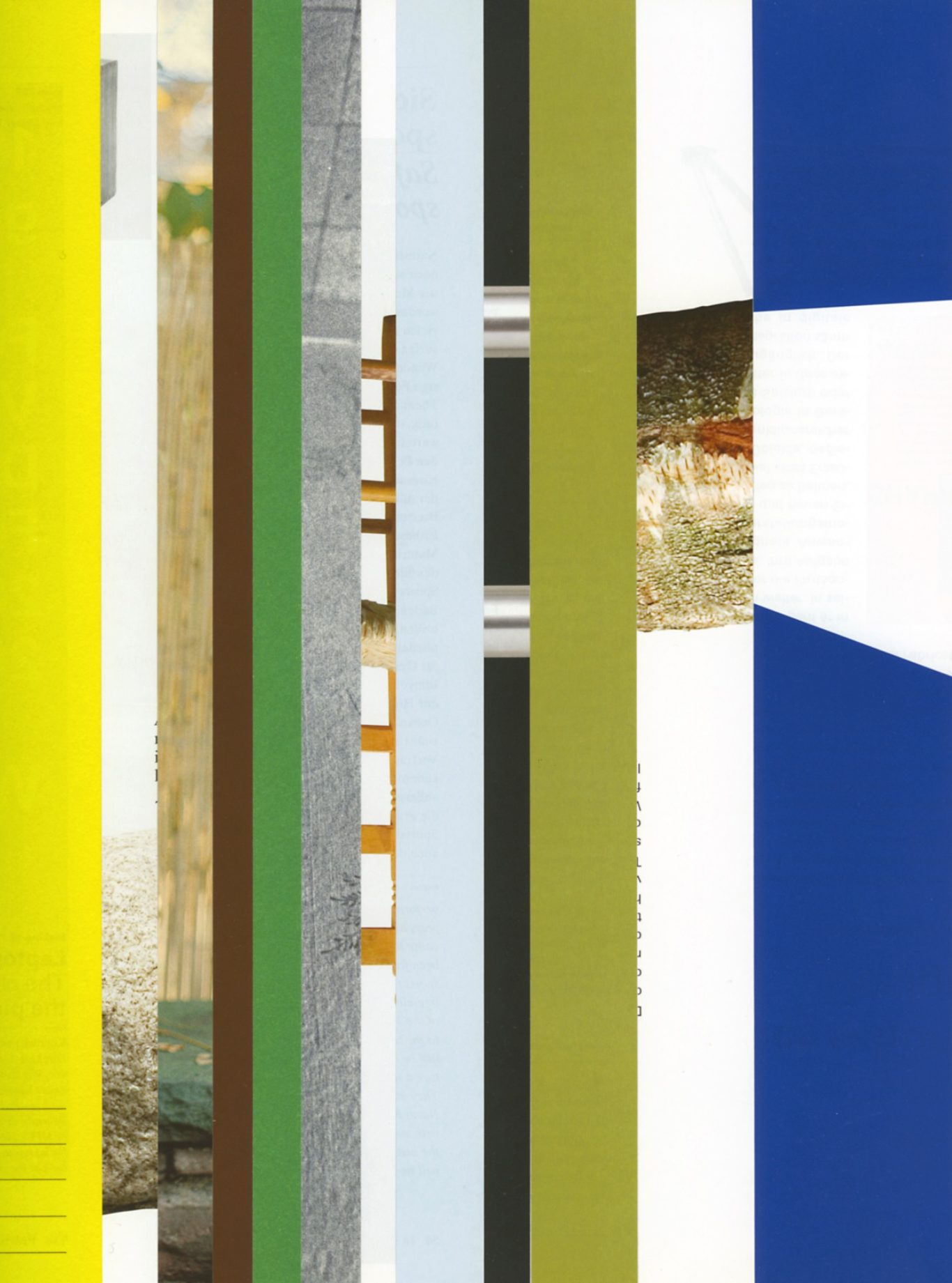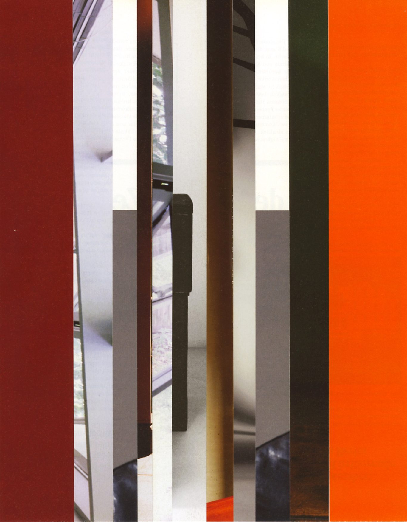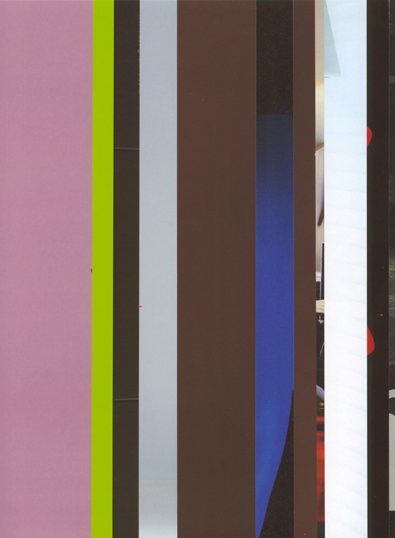 Ausgangsmaterial sind vertikal geschnittene Zeitschriften im Standardformat. Angelehnt an die Technik des klassischen Filmschnitts wurde hier bewusst „vor“ der Handlung geschnitten: Einzelne Merkmale, Handlung, Schrift, Figuren und inhaltliche Informationen wurden konsequent weggelassen.
